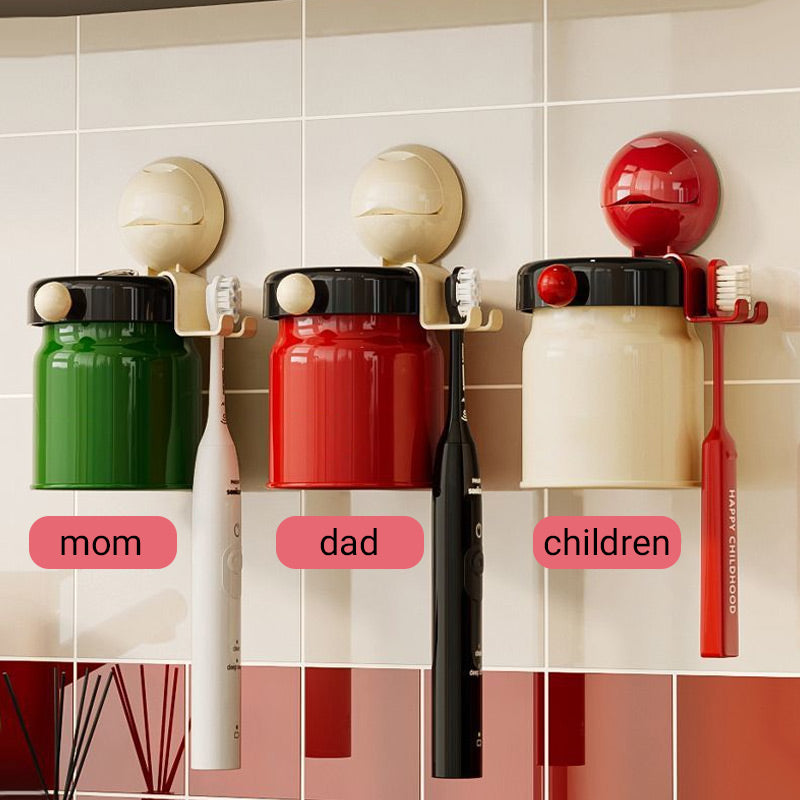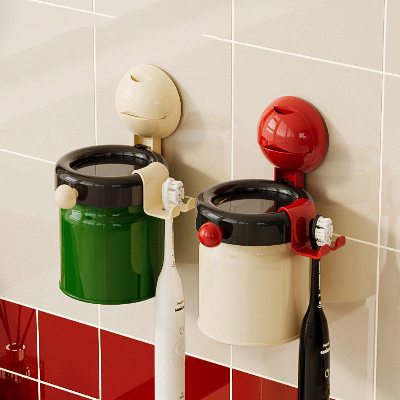 No-Drill Wall Mounted Toothbrush Holder with Magnetic Cup